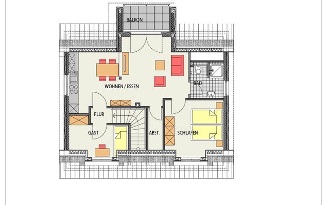 Die Ferienwohnung verfügt im großzügigen und gemütlich eingerichteten Wohn- und Essbereich über eine komplett ausgestattete Küche mit vielen Annehmlichkeiten, über ein Bad mit Dusche sowie ein Schlafzimmer mit Doppelbett.