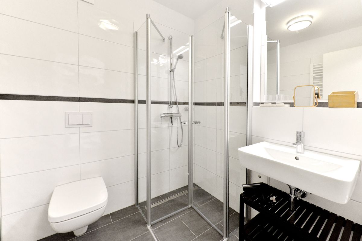 • Mikrowelle, Kaffeemaschine, Wasserkocher, Toaster, Kühlschrank mit Gefriermöglichkeit u.v.m.