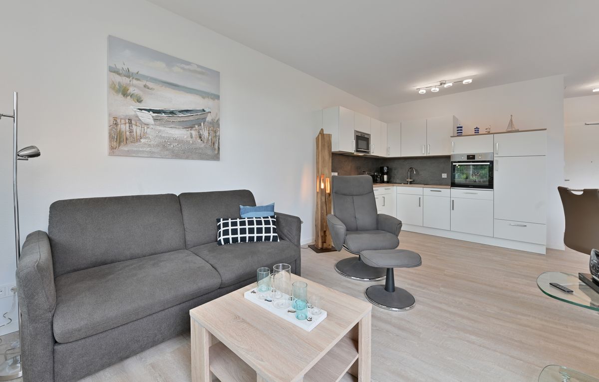 Nach ca. 1 km erblicken Sie das „Haus Seezeichen“ (rot-weißes Gebäude im Ortszentrum). Biegen Sie hier links ab. Nach ca. 30 m sehen Sie auf der rechten Seite das Büro der FEMARIS GmbH. Hier erfolgt die Schlüsselübergabe.