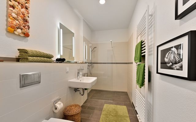 Nach ca. 1 km erblicken Sie das „Haus Seezeichen“ (rot-weißes Gebäude im Ortszentrum). Biegen Sie hier links ab. Nach ca. 30 m sehen Sie auf der rechten Seite das Büro der FEMARIS GmbH. Hier erfolgt die Schlüsselübergabe.