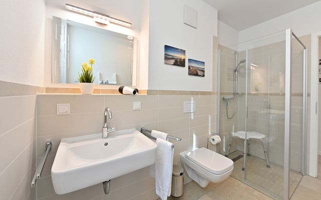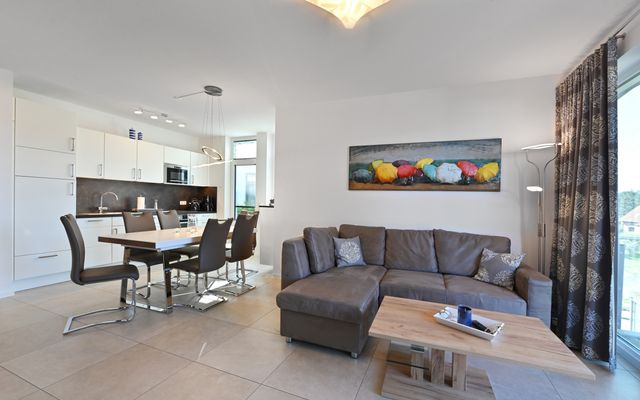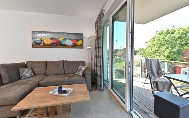 Nach ca. 1 km erblicken Sie das „Haus Seezeichen“ (rot-weißes Gebäude im Ortszentrum). Biegen Sie hier links ab. Nach ca. 30 m sehen Sie auf der rechten Seite das Büro der FEMARIS GmbH. Hier erfolgt die Schlüsselübergabe.