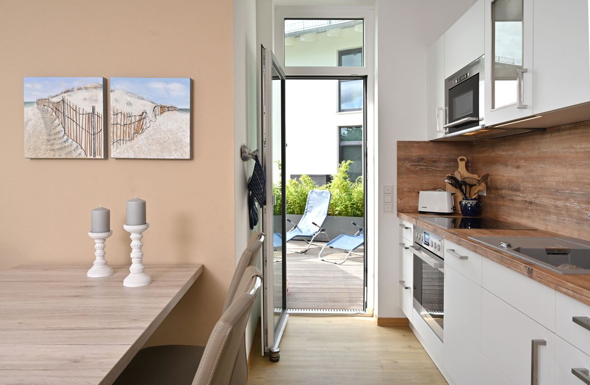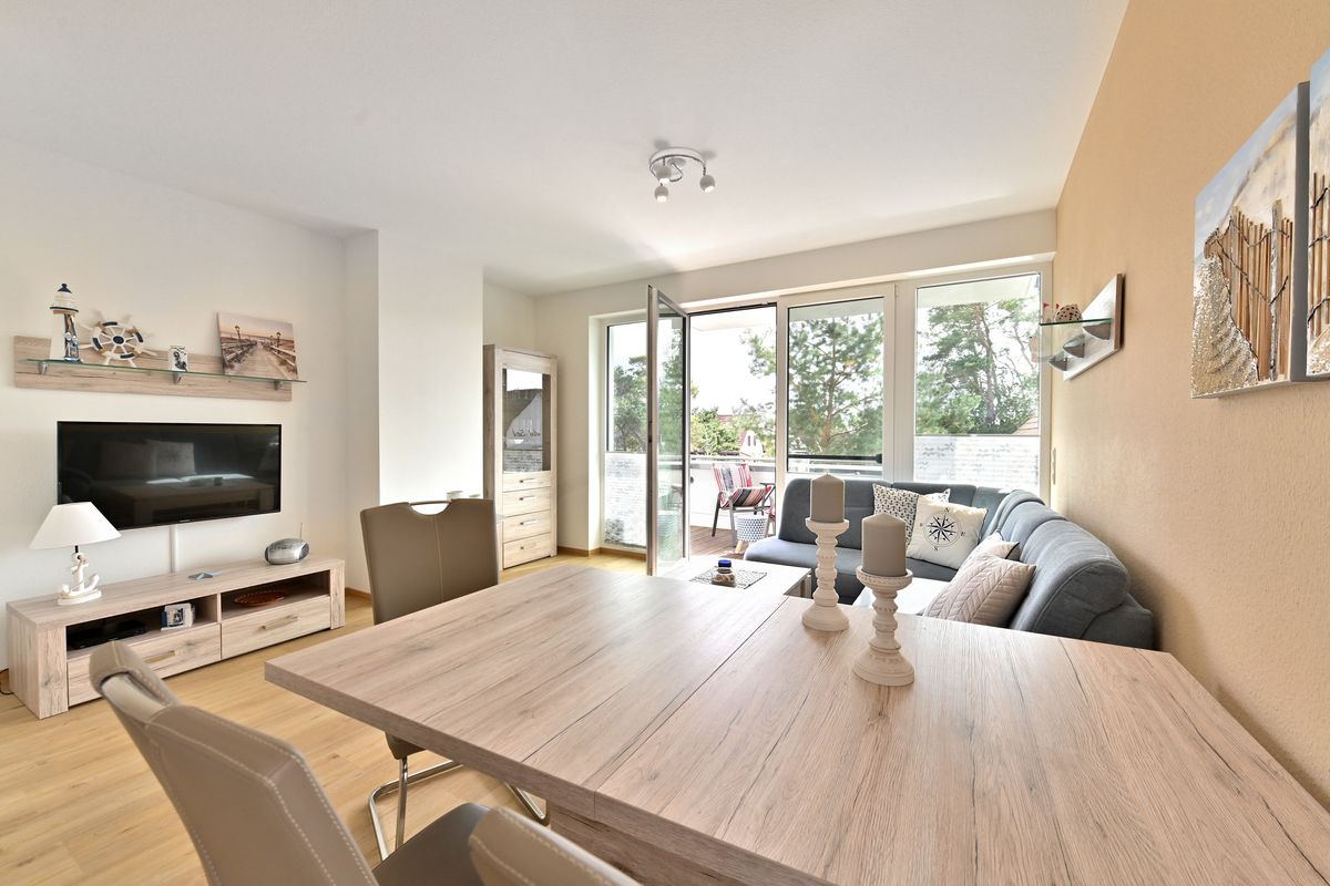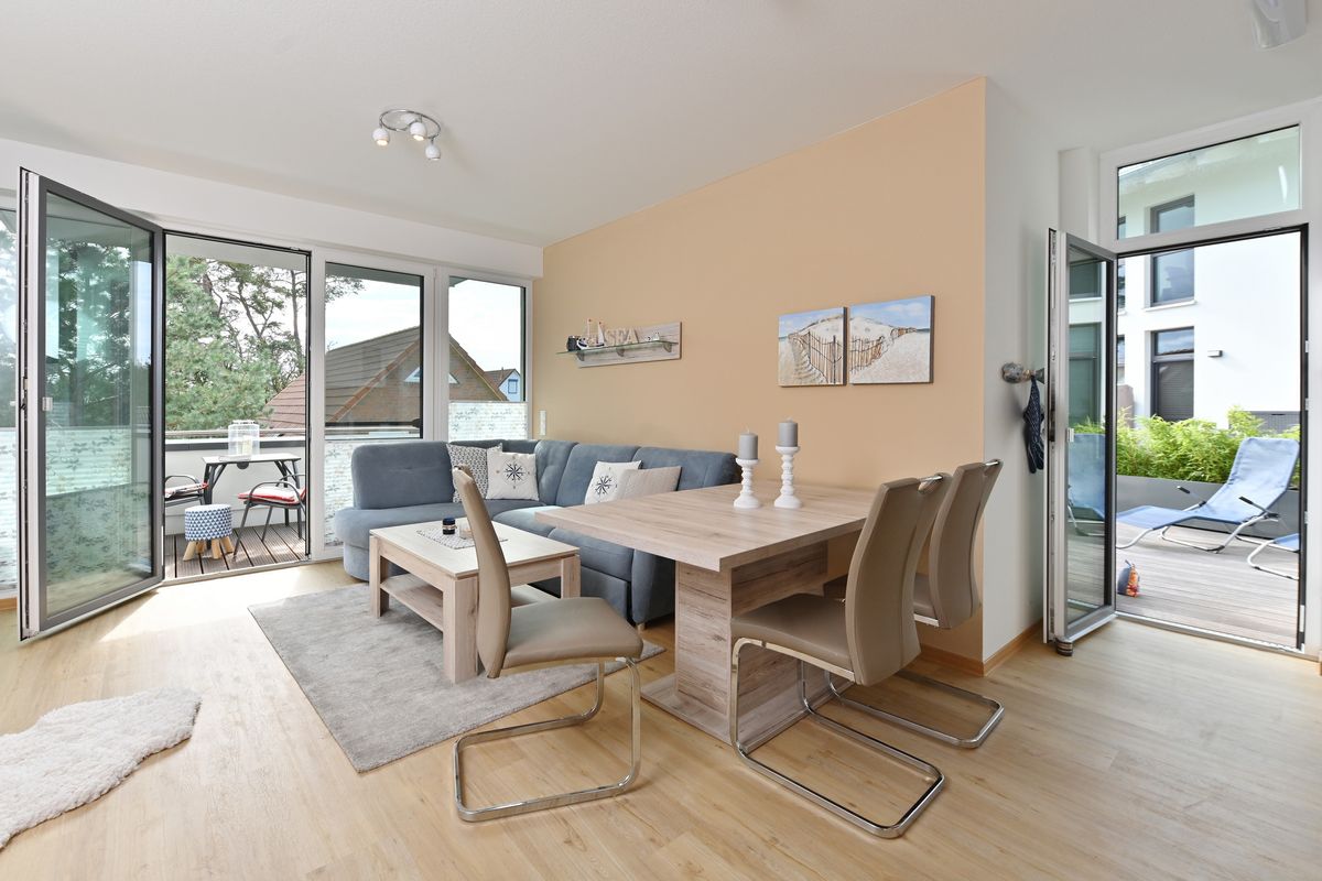 Die Ferienwohnung "Selma" befindet sich im Neubau "Bodden-Markt Glowe" im Ortszentrum des Erholungsortes. Die Wohnung bietet auf ca. 62 qm Wohnfläche einen gemütlichen Wohnraum mit integrierter Küche, einen Schlafraum mit Doppelbett und ein Bad mit Dusche. Auf der 57 qm großen Terrasse mit Süd-West-Ausrichtung lassen Sie die Seele baumeln. Zur Wohnung gehört außerdem ein Parkplatz. Im Haus steht eine Gemeinschaftssauna mit Relaxbereich zur Verfügung, welche Sie nach Anmeldung kostenfrei alleine nutzen können.