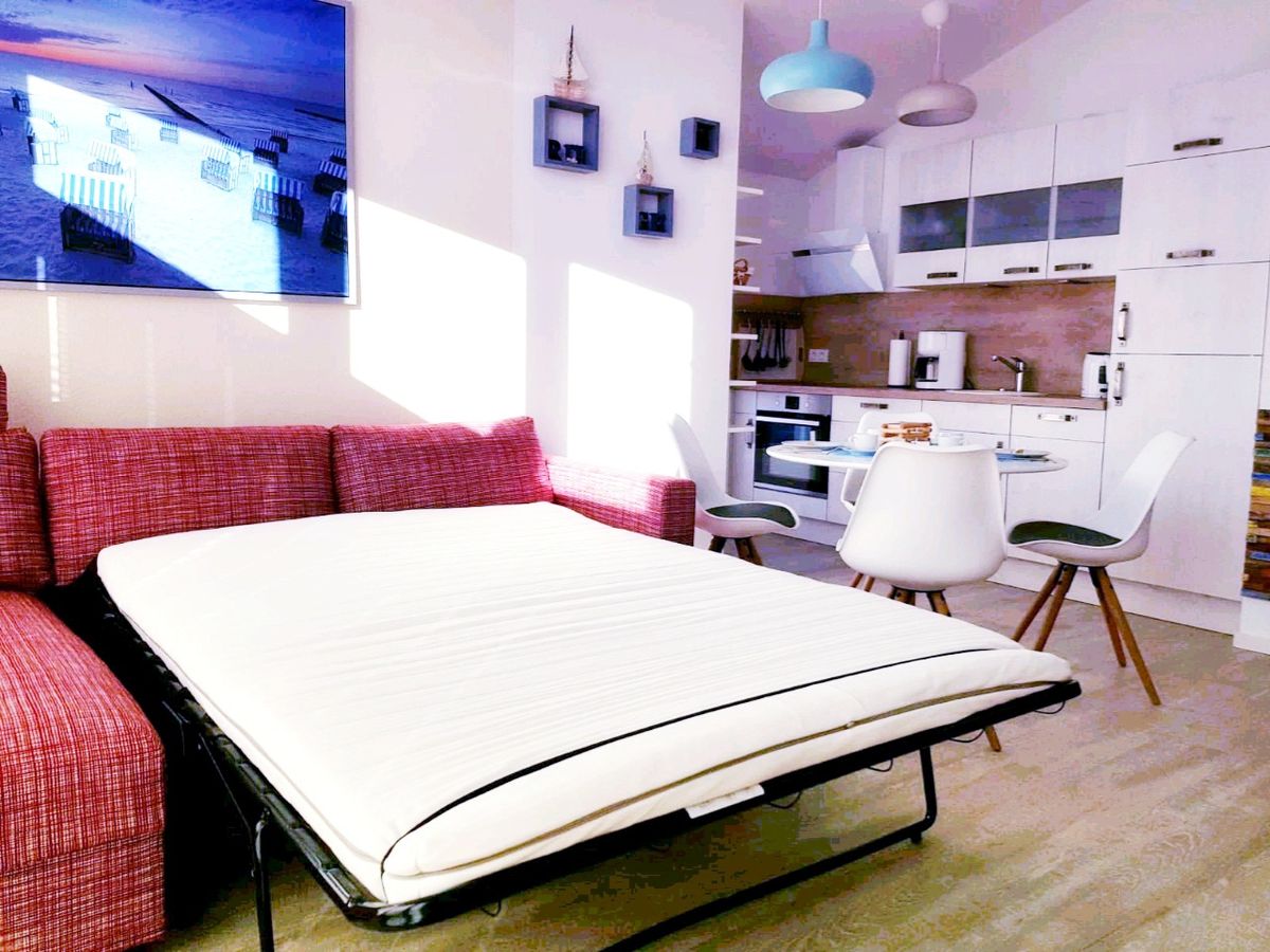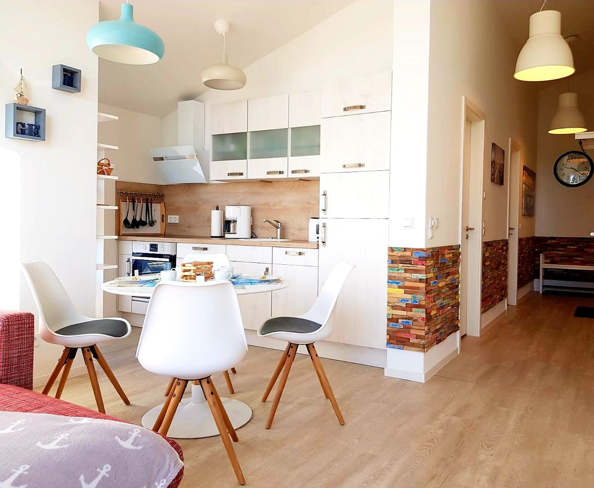 Nach ca. 1 km erblicken Sie das „Haus Seezeichen“ (rot-weißes Gebäude im Ortszentrum). Biegen Sie hier links ab. Nach ca. 30 m sehen Sie auf der rechten Seite das Büro der FEMARIS GmbH. Hier erfolgt die Schlüsselübergabe.