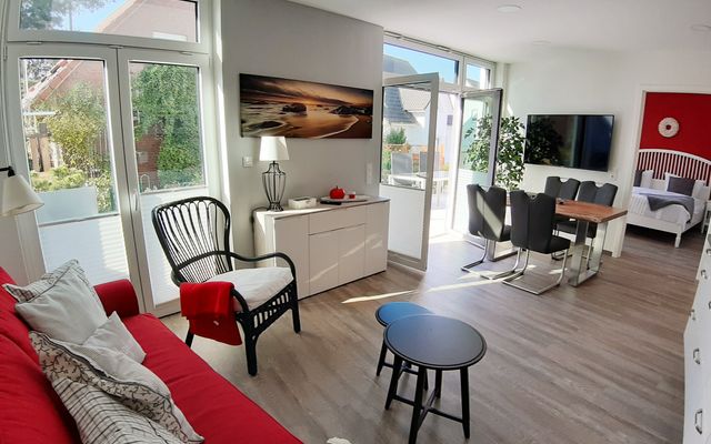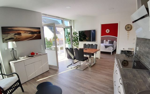 Nach ca. 1 km erblicken Sie das „Haus Seezeichen“ (rot-weißes Gebäude im Ortszentrum). Biegen Sie hier links ab. Nach ca. 30 m sehen Sie auf der rechten Seite das Büro der FEMARIS GmbH. Hier erfolgt die Schlüsselübergabe.
