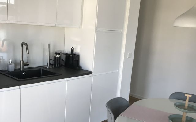 • Nespresso-Kaffeemaschine, Kaffeebreiter (Bodum), Wasserkocher, Toaster, Kühlschrank mit Gefriermöglichkeit u.v.m.