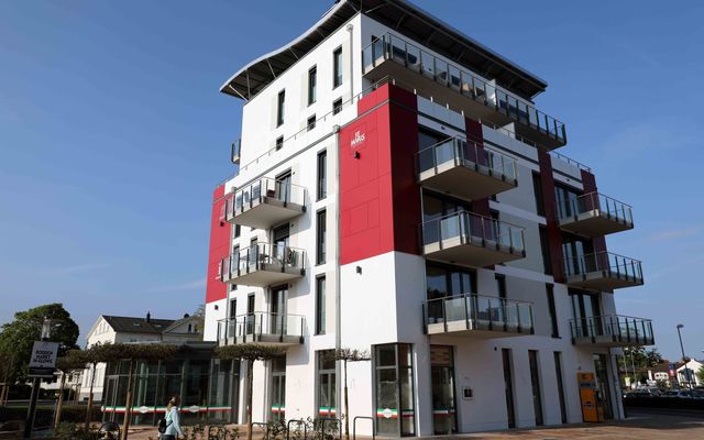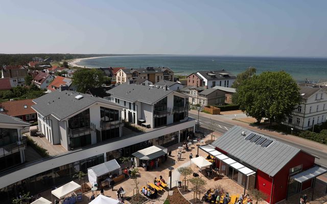 Nach ca. 1 km erblicken Sie das „Haus Seezeichen“ (rot-weißes Gebäude im Ortszentrum). Biegen Sie hier links ab. Nach ca. 30 m sehen Sie auf der rechten Seite das Büro der FEMARIS GmbH. Hier erfolgt die Schlüsselübergabe.