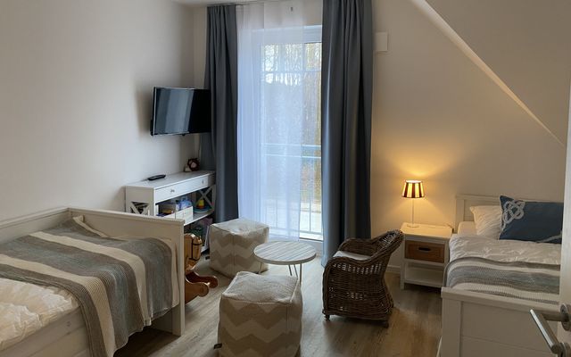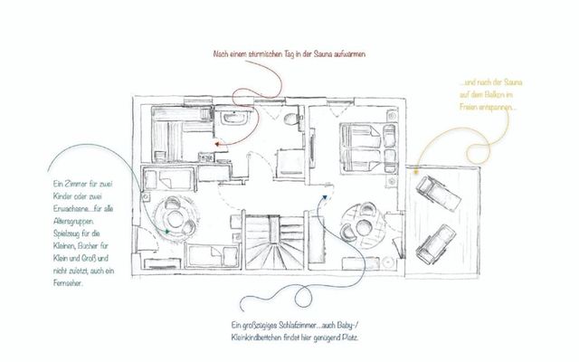 Und den Kindern wird es auch nicht langweilig, dafür sorgen einige Spiele, Bücher sowie Lego und Lego duplo Steine. Die Einzelbetten können mit einer Absturzsicherung ausgestattet werden. Für die ganz Kleinen stehen ein Kinderbettchen (60x120) und ein Hochstuhl bereit.