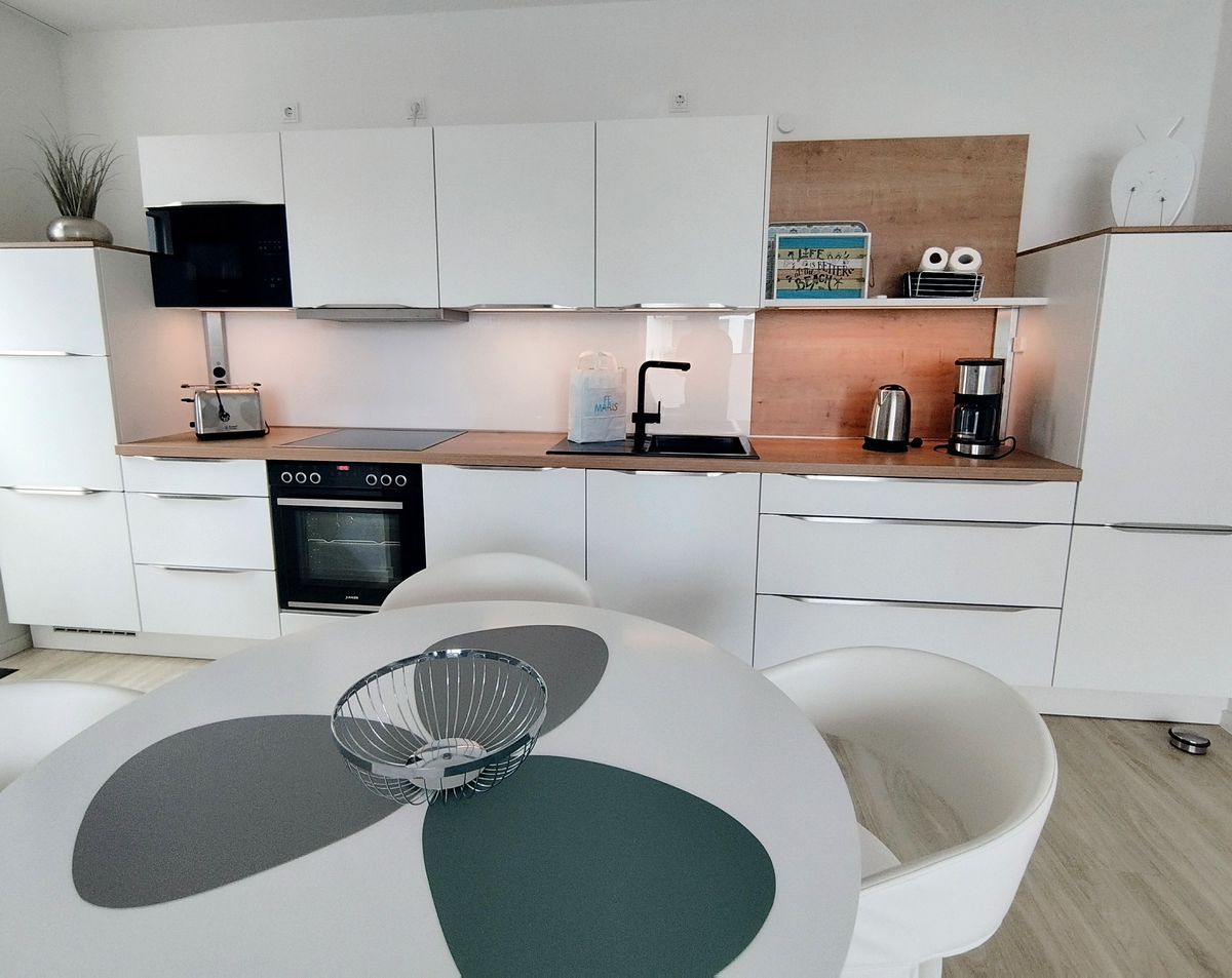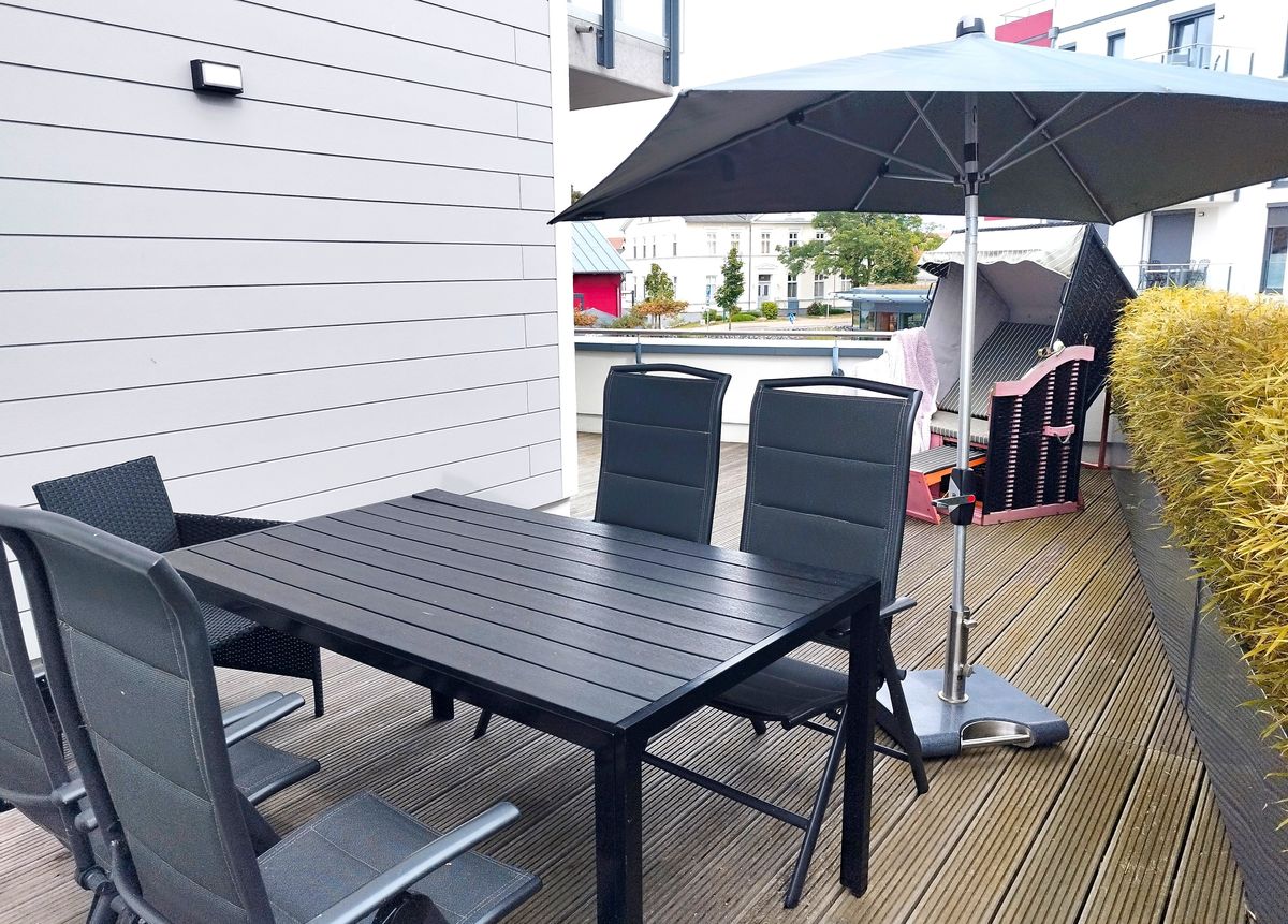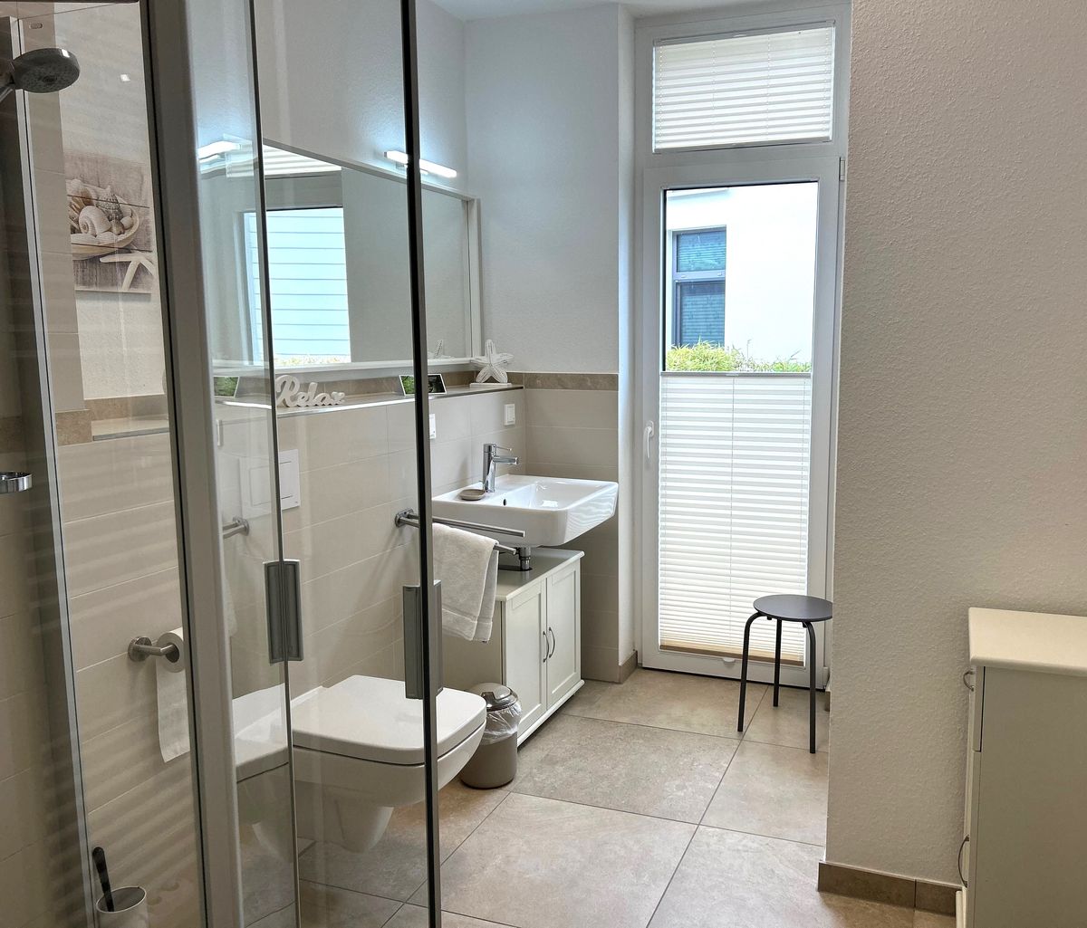 Nach ca. 1 km erblicken Sie das „Haus Seezeichen“ (rot-weißes Gebäude im Ortszentrum). Biegen Sie hier links ab. Nach ca. 30 m sehen Sie auf der rechten Seite das Büro der FEMARIS GmbH. Hier erfolgt die Schlüsselübergabe.