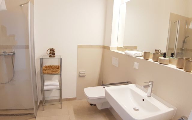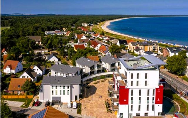 Nach ca. 1 km erblicken Sie das „Haus Seezeichen“ (rot-weißes Gebäude im Ortszentrum). Biegen Sie hier links ab. Nach ca. 30 m sehen Sie auf der rechten Seite das Büro der FEMARIS GmbH. Hier erfolgt die Schlüsselübergabe.