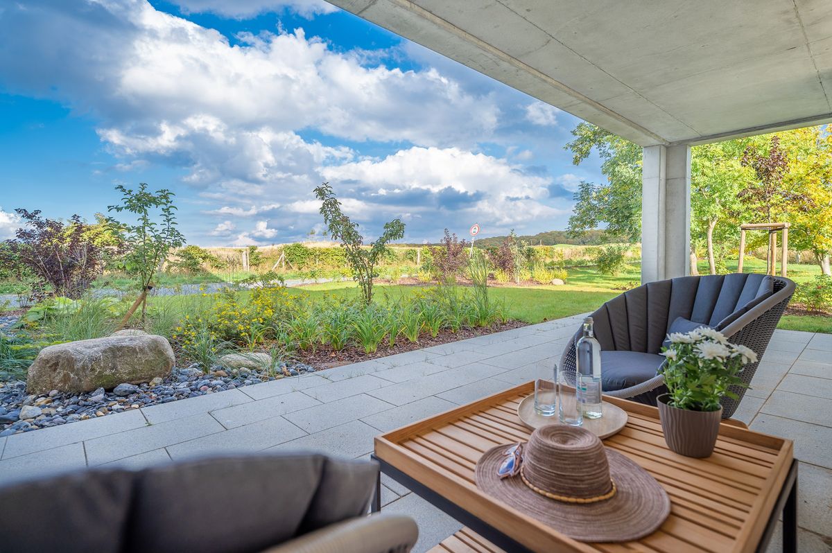 Natur, Ruhe, Komfort und Wellness – das erwartet Sie in dieser wundervollen und lichtdurchfluteten Ferienwohnung mit einer großen Terrasse, von der Sie eine ungestörte Aussicht über den Golfplatz bis zum Wald an der Steilküste genießen. Ideal für 2 Personen ist ihre Ferienwohnung gänzlich ebenerdig und barrierefrei. Ihr geliebter Hund ist ebenfalls willkommen. Golfer werden die unmittelbare Lage am Golfplatz Schloss Ranzow zu schätzen wissen, Naturliebhaber die vielen Wanderwege in den wild-romantischen Buchenwäldern des Nationalparks, die direkt ab der Haustür per pedes oder dem Fahrrad erkundet werden können. Innere Ruhe finden Sie im Wellness-Bad mit ebenerdiger Dusche und elegant freistehender Badewanne, ideal für ein romantisches Badevergnügen zu zweit. Entspannung pur, ohne die Wohnung verlassen zu müssen. Schlafen Sie nach ereignisreichen Tagen im wohlig-eleganten Schlafzimmer auf 7-Zonen Komfortmatratzen. Die Ferienwohnung ist hochwertig ausgestattet mit stilvollem Mobiliar, Smart-TV im Wohnzimmer und komplett eingerichteter Markenküche. W-LAN ist vorhanden. Ein überdachter Parkplatz steht Ihnen direkt am Haus zur kostenfreien Nutzung zur Verfügung.