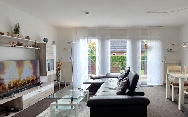 • Wohnbereich mit Leder Eckcouch und großem 55Zoll Curved TV