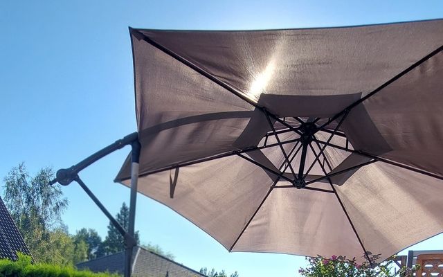 • gemütliche, sonnige Terrasse mit Bestuhlung, Tisch und Sonnenschirm