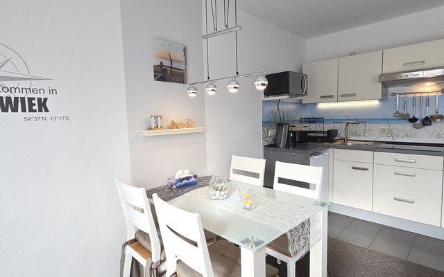 Der beliebte Urlaubsort Wiek auf Rügen ist mit seiner direkten Wasserlage am Wieker Bodden, mit einem grandiosen Panoramablick über die Ostsee nach Hiddensee und einer der beliebtesten Hafenanlagen im Ostseebereich ein wunderbares Urlaubsziel. Hier finden Segler, Surfer und Kiter paradiesische Bedingungen mit hoher Sonnenscheingarantie und einer frischen Brise von der Ostsee, die in den heißen Sommermonaten für ein angenehmes Klima sorgt. Die Nähe zu den beliebtesten kilometerlangen Sandstränden der Insel Rügen, die auch über ein gut ausgebautes Radwegenetz zu erreichen sind, macht Wiek für Bade- Rad- und Wanderurlauber zu einem Urlaubsmagnet. Der herrliche Ostsee-Sandstrand „Schaabe“ ist ca. 7 km entfernt und gut mit dem Fahrrad zu erreichen.