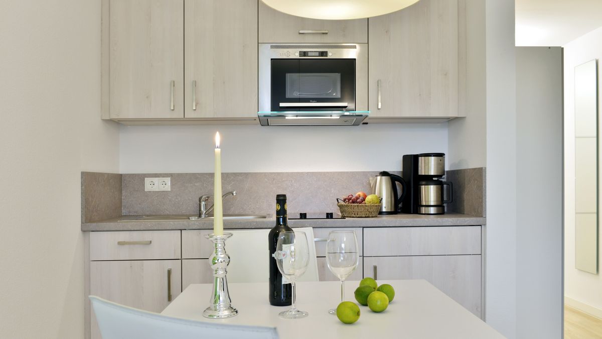 Unsere helle und moderne Ferienwohnung "Meerstern" im ersten Obergeschoss des Gebäudes mit zwei Schlafzimmern ist optimal geeignet für bis zu 4 Personen. Die Wohnung ist im gehobenem, modernen Standard eingerichtet. In den Wohnbereich ist eine Einbauküche mit Kühlschrank, Geschirrspüler, Backofen, Kaffeemaschine, Wasserkocher, Toaster, Geschirr und Besteck etc. integriert. Das Badezimmer ist mit einer Dusche ausgestattet. Im Domizil "Meerstern" befindet sich außerdem eine Waschmaschine. In der Tiefgarage steht ein Parkplatz zur Verfügung.