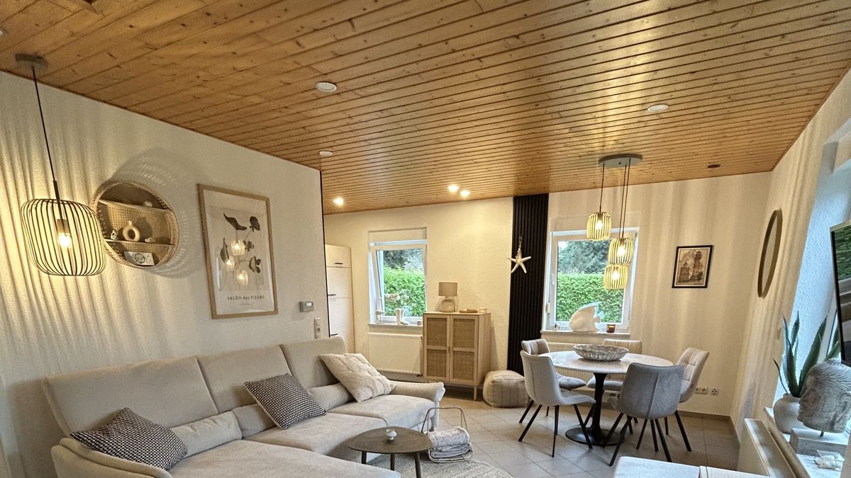 Im Deichhaus „Boddentraum“ heißen wir Sie zu einem wundervollen Aufenthalt willkommen! Nur rund 500 Meter vom feinen Sandstrand von Juliusruh entfernt und direkt am ruhigen Breeger Bodden gelegen, genießen Sie hier eine einzigartige Verbindung aus Wasserblick, Natur und modernem Wohnkomfort. Besonders der Blick vom Balkon über den Bodden ist ein Moment, den man so schnell nicht vergisst – perfekt für einen entspannten Start in den Tag oder einen gemütlichen Abend mit dem sanften Glitzern des Wassers. Das helle, moderne Ferienhaus bietet Platz für bis zu vier Personen und vereint hochwertige Ausstattung mit einem warmen Wohlfühlambiente. Im großzügigen Wohn- und Essbereich sorgt ein Kamin für behagliche Stunden – ideal nach einem Strandtag, einer Fahrradtour oder einem Ausflug über unsere schöne Insel. Die offene Küche ist umfangreich ausgestattet, sodass gemeinsame Kochmomente ebenso entspannt gelingen wie das gemütliche Frühstück mit Blick in die Natur. Zwei komfortable Schlafzimmer – eines mit Doppelbett, eines mit zwei Einzelbetten – bieten viel Raum für erholsame Nächte. Das Badezimmer mit Duschwanne, Waschtisch und WC sowie ein zusätzliches Gäste-WC sorgen für angenehmen Komfort, besonders bei einem Aufenthalt mit Familie oder Freunden. Für noch mehr Bequemlichkeit stehen eine Waschmaschine, ein Kinderbett + Kinderhochstuhl, Internetanschluss sowie ein abschließbarer Fahrradschuppen bereit. Die Terrasse und der Balkon schenken Ihnen zu jeder Tageszeit wunderbare Ausblicke und ruhige Momente am Wasser. Zwei kostenfreie Parkplätze direkt am Haus runden das Angebot ab.