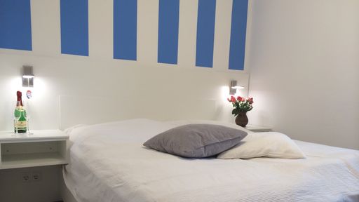 In drei Schlafzimmer finden sich 6 Schlafplätze. Ein Schlafzimmer besitzt ein Doppelbett und ist mit einem TV-Gerät ausgestattet, ein weiteres beherbergt 2 Einzelbetten und ebenfalls einen Flatscreen-TV. Das Schlafzimmer im Erdgeschoss ist mit einem Einzelbett, ausziehbar zum Doppelbett (Breite: 160cm), ausgestattet.