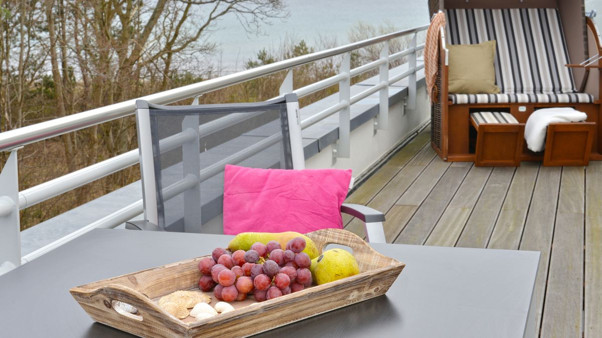 Die Ferienwohnung "Strandkorb" im Strandhaus Juliusruh liegt direkt am schönen Sandstrand vom Seebad Juliusruh. Es sind nur wenige Schritte bis zur Strandpromenade und der Ostsee. Von der fast 40 m² großen Dachterrasse aus, können Sie schon beim Frühstück den wundervollen Blick auf die Ostsee genießen. Die Ferienwohnung verfügt über ein Doppelbett im Schlafzimmer und eine große, bequeme Schlafcouch im Wohnbereich. Die modern und umfangreich ausgestattete Küche und der liebevoll eingerichtete Essbereich lassen keine Wünsche offen. Für Ihr Auto steht ein Carportplatz zur Verfügung. Von dort erreichen Sie bequem mit dem Aufzug die Penthouse-Wohnung.