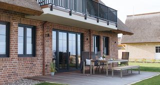 Die Ferienwohnung "Oberdeck" im Strandhaus Juliusruh bietet Ihnen eine großzügigie nach Süden ausgerichtete Dachterrasse mit Blick auf die Ostsee. Sie ist modern und chic eingerichtet. Vom Schlafzimmer wie aus dem Wohnbereich erreichen Sie die große mit Gartenmöbeln ausgestattete Terrasse. Die Küche im Wohnbereich ist ebenfalls großzügig und mit vielen Annehmlichkeiten ausgestattet. Im Schlafzimmer finden Sie ein großes Doppelbett. Direkt vom Schlafzimmer gelangen Sie in das Badezimmer, welches mit einer Echtglasdusche ausgestattet ist.