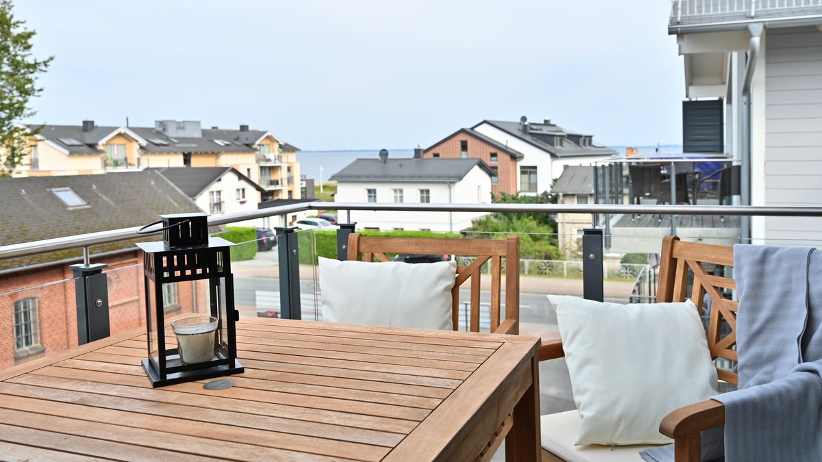 Die Ferienwohnung "Sonnensegler" befindet sich in der 1. Etage des Strandhauses Juliusruh am wunderschönen Ostseestrand der Schaabe. Sie besitzt einen großzügigen, geschützt liegenden Balkon mit seitlichem Meerblick. Die Ferienwohnung bietet optimalen Platz für 2 Erwachsene und 2 Kinder. Ihr Urlaubsdomizil besitzt ein Schlafzimmer mit Doppelbett, im Wohnbereich finden Sie eine gemütliche Couch mit Schlaffunktion und einen Flatscreen-TV, einen Essbereich sowie die mit allen Annehmlichkeiten ausgestattete Küche. Sie erreichen die Ferienwohnung auch bequem über einen Aufzug. Im Haus befinden sich eine Waschmaschine, ein Trockner und ein Abstellraum für Fahrräder. Ein Parkplatz steht Ihnen am Haus zur Verfügung. Die hauseigene Sauna nutzen Sie nach Anmeldung kostenfrei.