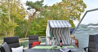 Die Ferienwohnung "Oberdeck" im Strandhaus Juliusruh bietet Ihnen eine großzügigie nach Süden ausgerichtete Dachterrasse mit Blick auf die Ostsee. Sie ist modern und chic eingerichtet. Vom Schlafzimmer wie aus dem Wohnbereich erreichen Sie die große mit Gartenmöbeln ausgestattete Terrasse. Die Küche im Wohnbereich ist ebenfalls großzügig und mit vielen Annehmlichkeiten ausgestattet. Im Schlafzimmer finden Sie ein großes Doppelbett. Direkt vom Schlafzimmer gelangen Sie in das Badezimmer, welches mit einer Echtglasdusche ausgestattet ist.