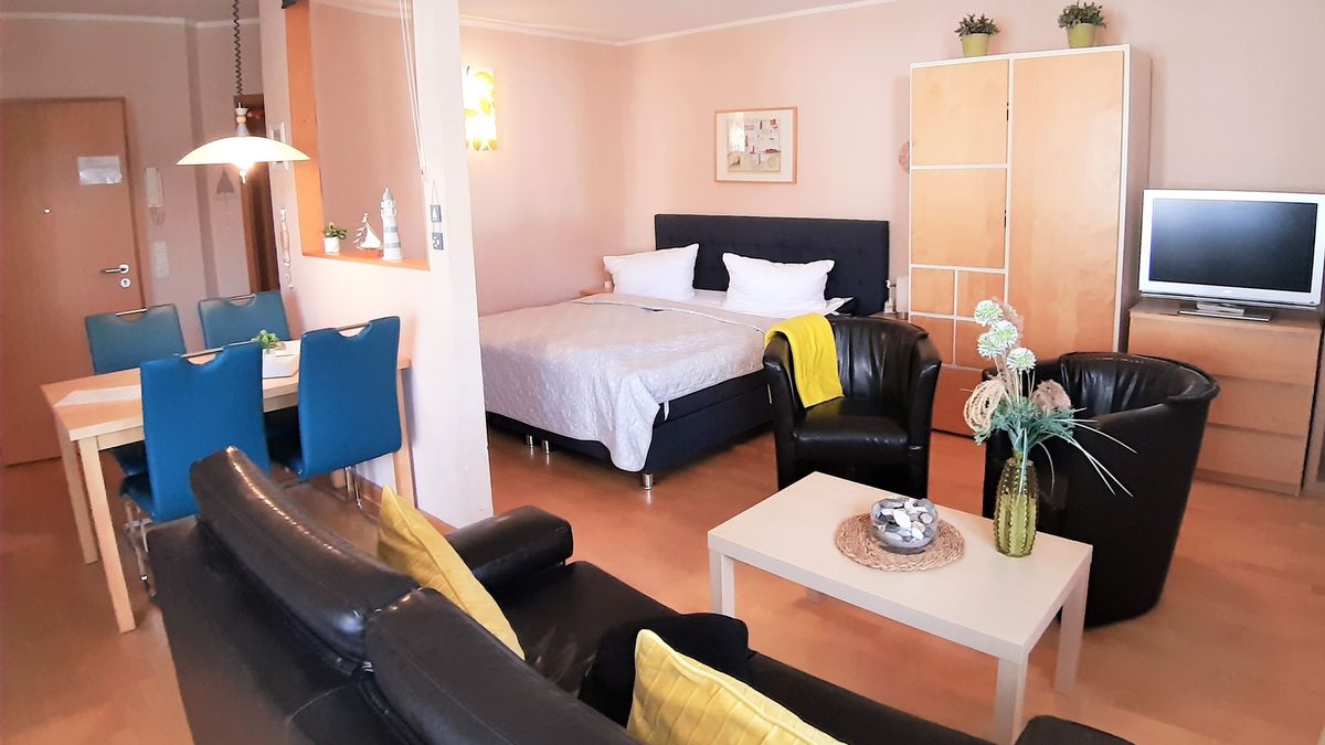 Die kleine, aber gemütliche Ferienwohnung "Ostseestrand" liegt direkt hinter der Düne des Ostseestrandes von Juliusruh. Ein kurzer Weg zum Strand ist also garantiert. Der Wohnbereich verfügt über eine Küchenzeile, eine Sitzecke mit Couch und TV sowie etwas abgetrennt, ein bequemes Boxspringbett (180 cmx 200cm) . Der Balkon ist aus dem Wohnbereich begehbar. Das Bad beherbert eine Dusche.