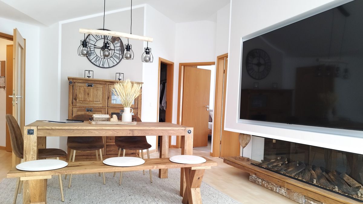 Das Domizil ist großzügig, hell und gemütlich eingerichtet. Die Ferienwohnung verfügt über ein Doppelbett im Schlafzimmer und eine Schlafcouch im Wohnbereich. Ein Kinder-/ Babybett kann zugestellt werden. Das großzügige Bad verfügt über eine Dusche.