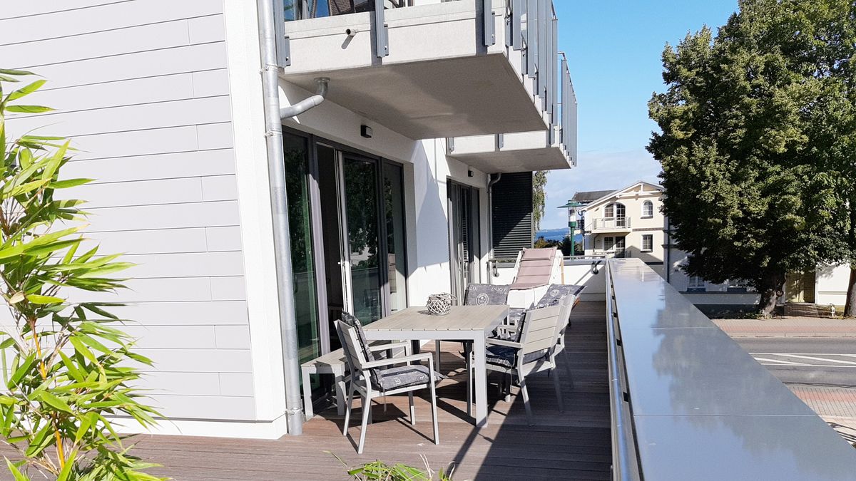 Das "Sonnendeck" bietet Platz für bis zu 6 Personen (4 Erwachsene und 2 Kinder). Die Wohnung bietet auf 96qm Wohnfläche einen gemütlichen Wohnraum mit integrierter Küche, zwei Schlafräume mit jeweils einem Doppelbett, ein Bad mit Dusche und ein Gäste-WC. Aus allen Räumen erreichen Sie entweder die Terrasse oder den Balkon. Im großzügigen Wohnbereich mit Couchlandschaft mit Schlaffunktion, TV-Gerät und Kamin für gemütliche Stunden ist der Essbereich und eine komfortable Küche integriert. Auf der großen Dachterrasse (61m²) mit Süd-West-Ausrichtung lassen Sie die Seele im Strandkorb baumeln.