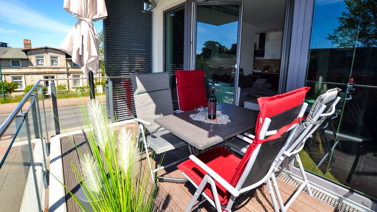 Die Ferienwohnung "Sonnensegler" befindet sich in der 1. Etage des Strandhauses Juliusruh am wunderschönen Ostseestrand der Schaabe. Sie besitzt einen großzügigen, geschützt liegenden Balkon mit seitlichem Meerblick. Die Ferienwohnung bietet optimalen Platz für 2 Erwachsene und 2 Kinder. Ihr Urlaubsdomizil besitzt ein Schlafzimmer mit Doppelbett, im Wohnbereich finden Sie eine gemütliche Couch mit Schlaffunktion und einen Flatscreen-TV, einen Essbereich sowie die mit allen Annehmlichkeiten ausgestattete Küche. Sie erreichen die Ferienwohnung auch bequem über einen Aufzug. Im Haus befinden sich eine Waschmaschine, ein Trockner und ein Abstellraum für Fahrräder. Ein Parkplatz steht Ihnen am Haus zur Verfügung. Die hauseigene Sauna nutzen Sie nach Anmeldung kostenfrei.