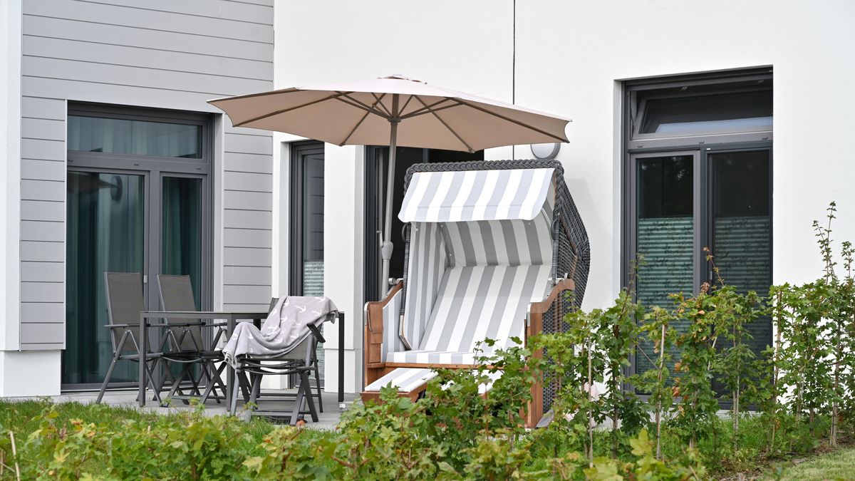 Die Wohnung "Riecht nach Meer" besitzt 2 Schlafzimmer, ein Bad mit Dusche, ein Gäste-WC und einen Wohnbereich mit Essbereich, Kamin und integrierter Küche, außerdem einen Balkon und eine riesige Dachterrasse mit Strandkorb. Zur Wohnung gehört ein Tiefgaragenstellplatz. Im Gebäude steht Ihnen eine Gemeinschaftssauna (kostenfrei) sowie ein Waschsalon (kostenpflichtig) mit Waschmaschine und Trockner zur Verfügung. Ihre Drahtesel parken Sie im abschließbaren Fahrradraum. Unsere Minis vergnügen sich auf einem kleinen Spielplatz. Das Beste aber ist die Nähe zum Ostseestrand!