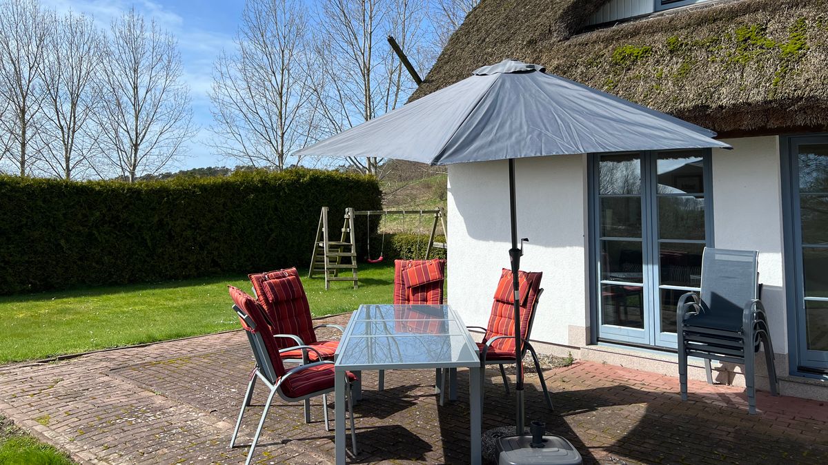 Im Spitzboden des 2. OG befindet sich eine gemütliche Dachkoje mit einem 140cm x 200cm Bett. Auch auf dieser Etage sorgt ein direkt angrenzendes Bad mit Dusche für Privatsphäre. Der offene, lichtdurchflutete Wohnbereich mit integrierter, optimal ausgestatteter Küche lädt zum gemeinsamen Kochen oder Relaxen auf den Sofas oder vor dem Gaskamin ein. Am großen Esstisch, von dem man durch die bodentiefen Fenster in den Garten blickt, finden 8 Personen bequem Platz. Um den Urlaub auch für Eltern entspannt zu gestalten, sind die Treppen und Steckdosen gesichert, eine Kleinkindausstattung mit Kinderbett, Kindertritten, Hochstuhl, Kindergeschirr und - besteck ist bereits vorhanden. Diverse Spiele und Malutensilien sorgen für Abwechslung und ein Bollerwagen erleichtert die Aktivitäten am Strand. Ein Terrassentisch für 8 Personen und eine elektrisch bedienbare Markise zum Sonnenschutz sind vorhanden. Die Markise bietet die Möglichkeit, eine gemütliche Beleuchtung dazu zu schalten. Für große oder befreundete Familien stehen die baugleichen Nachbarhäuser „Deich Frans", "Deich Alma“ und "Deich Michel" ebenfalls zur Verfügung. Es besteht die Möglichkeit, die Terrassentrennwände zu demontieren und so benachbarte Terrassen gemeinsam zu nutzen. Die Ostsee und der Strand sind in wenigen Minuten fußläufig zu erreichen.